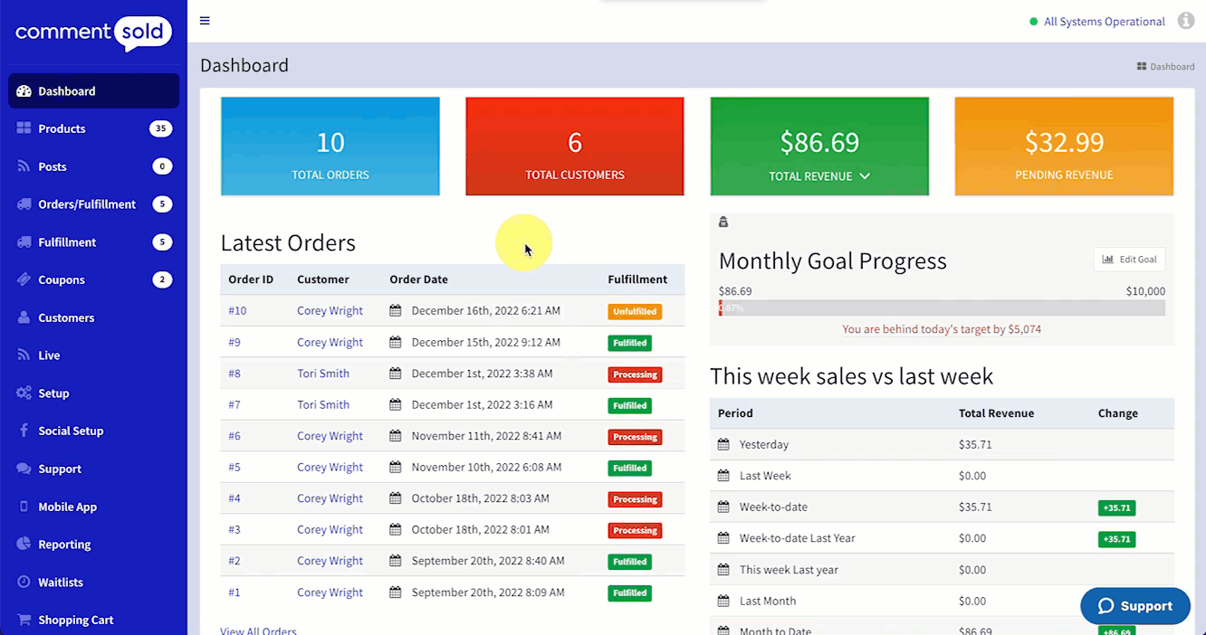 In addition to the flat-rate monthly fee, CommentSold also charges retailers a percentage-based commission fee that is based on the sales generated that month. For example, a retailer on the Starter plan would be charged a commission fee that is 5% of their monthly sales. If they generated $50,000 in sales, their commission fee would be $2,500.