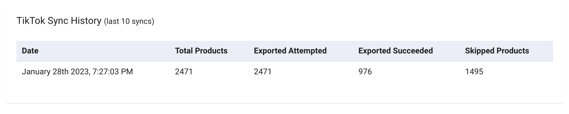 You can view a log of your past ten (10) product syncs at the bottom of your TikTok page in CommentSold.