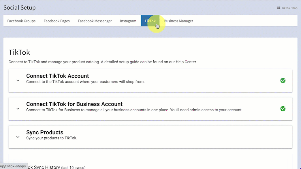 Before you can sell your products in shoppable TikToks or on TikTok Live, you’ll need to sync your products. This process is required as TikTok must first ensure your products meet their guidelines, and then approve them for selling.