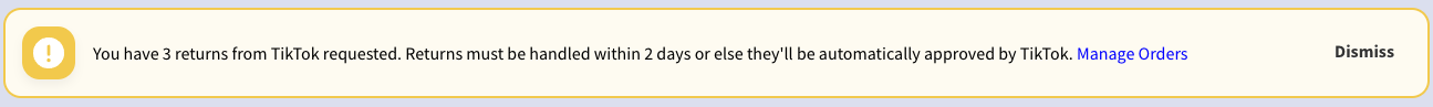 You will be alerted to all TikTok Return requests via a banner at the top of your CommentSold dashboard.