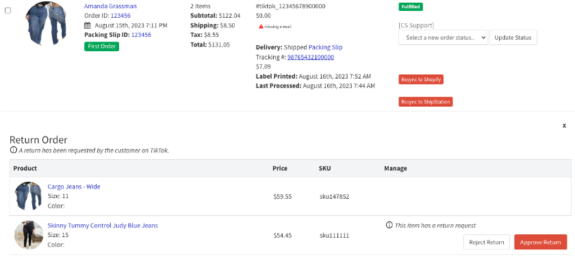 | Note: If you Accept/Deny the return in TikTok instead of CommentSold, CS does not get the order status update. This causes the order in CS to be stuck in the request state. |