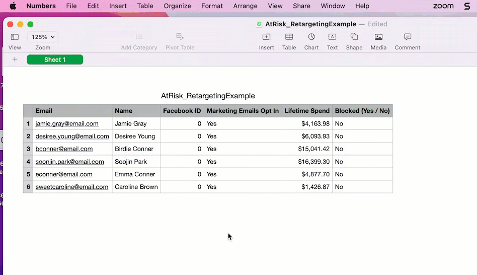 - Select the Numbered column on the left side of the spreadsheet. It is the first column and does not have a column header (i.e., it doesn't have a header like Email, Name, etc.).