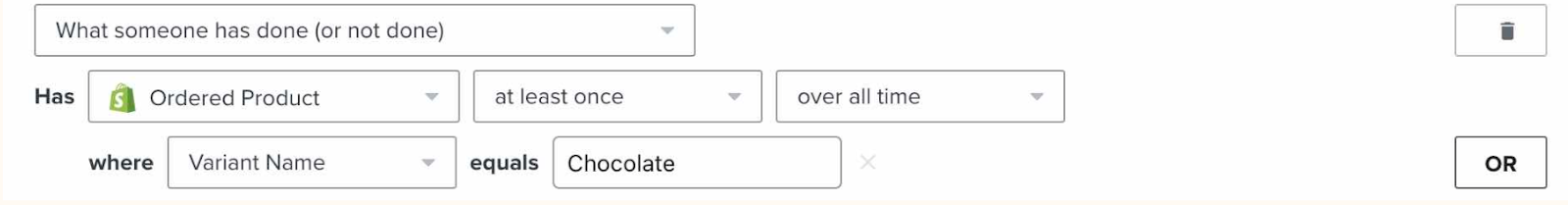 Want to target top shoppers who have purchased a specific brand or size in the past? Send a Klaviyo campaign!