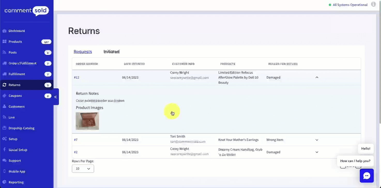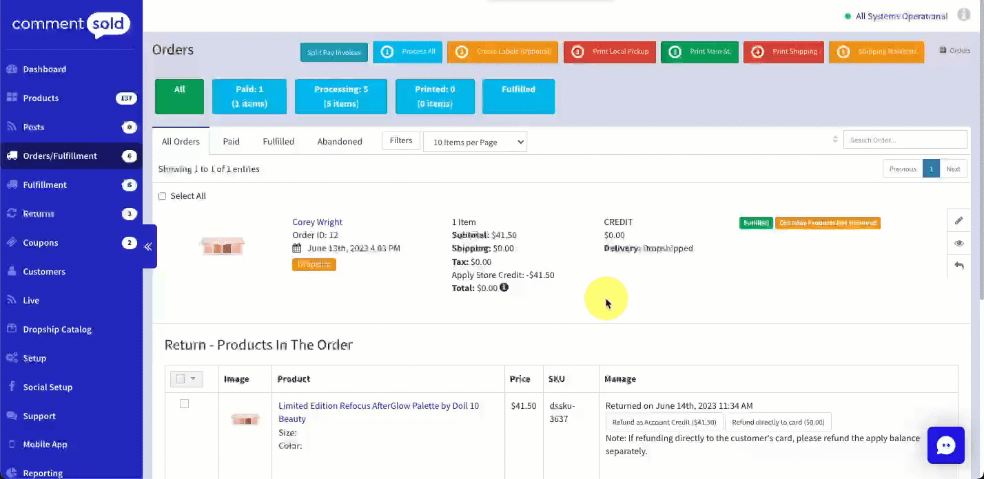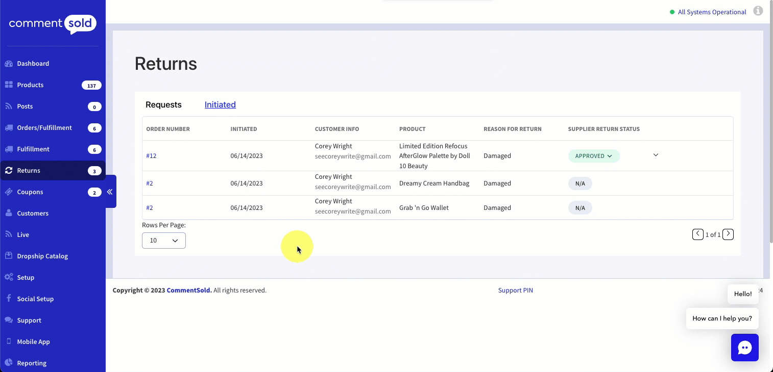 CommentSold’s Returns page is your central location to view and process customer dropship return requests.