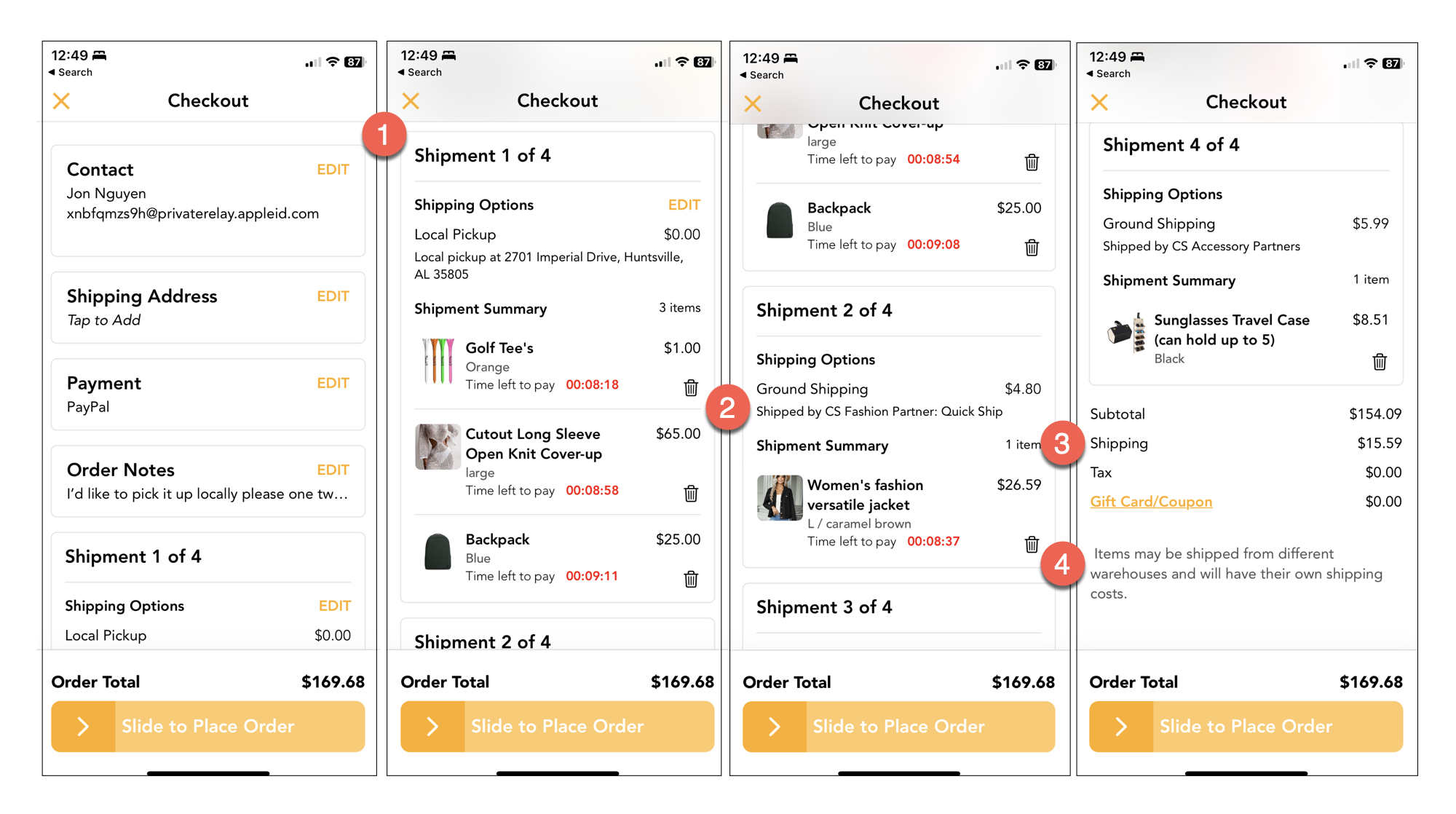 - Shipments will display their shipment number out of the order’s total number of shipments (e.g., 1 of 3, 2 of 3, etc.).