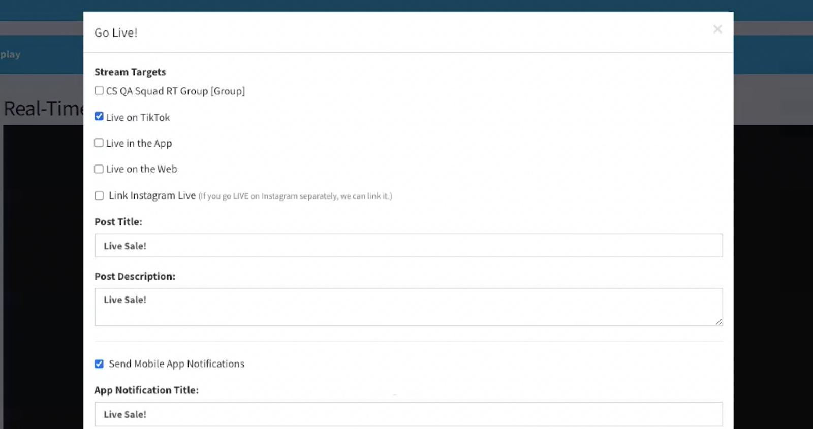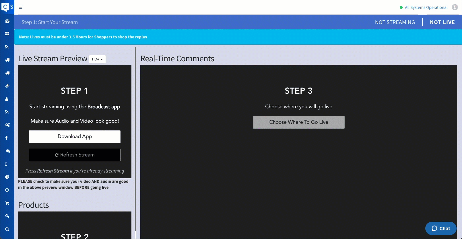 Even if you plan to go live only on TikTok, you will need to start the stream in your CS account. This is necessary to access your products and real-time comments in your CommentSold Live Overview.