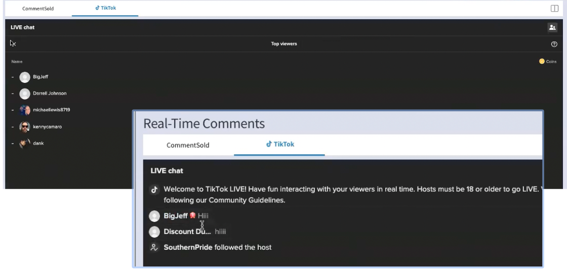 - TikTok Creator Account. Keep this tab open so comments can feed into the Real-Time Comments feed in CommentSold. You don’t need to interact with this tab—just ensure you’re logged in.