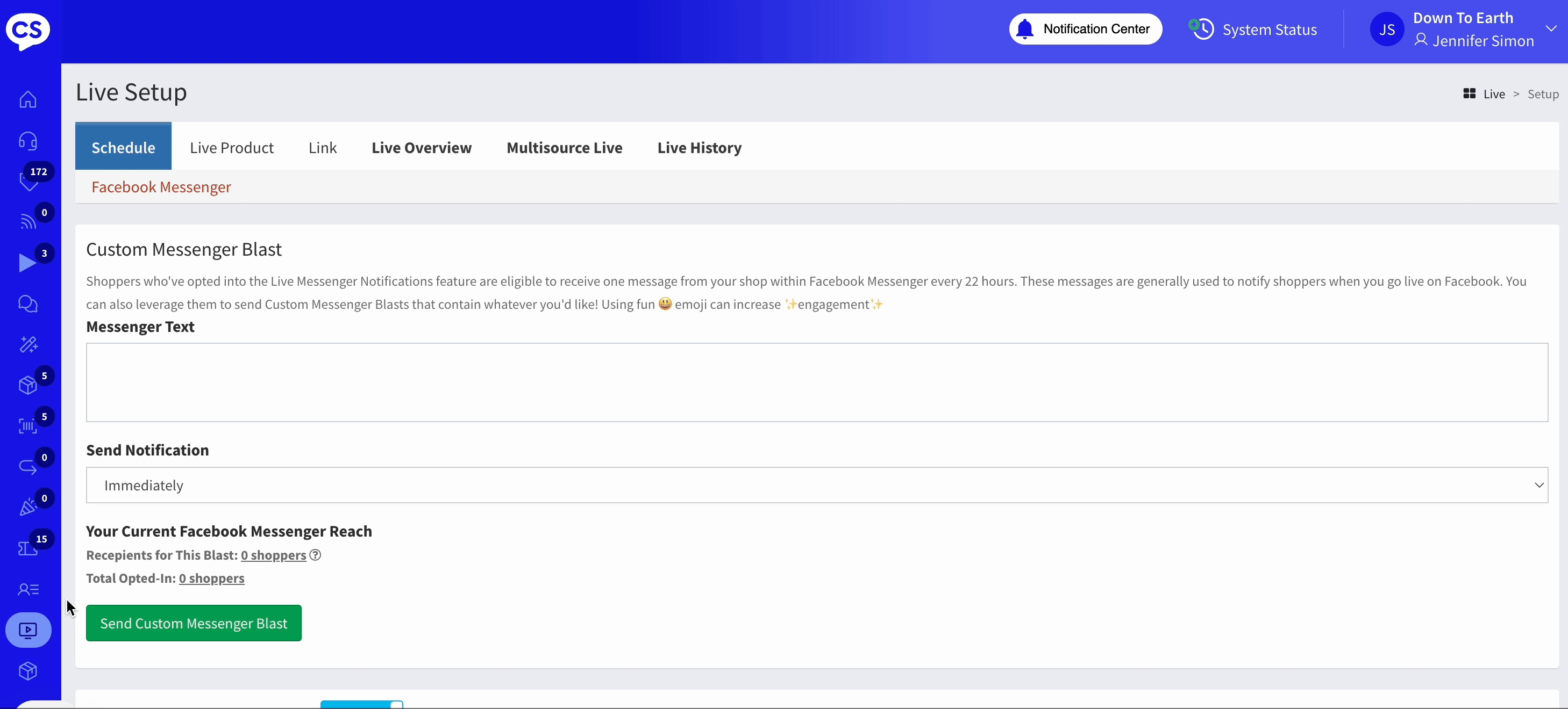 - Locate the Live tab in the left side menu of your CS Dashboard.