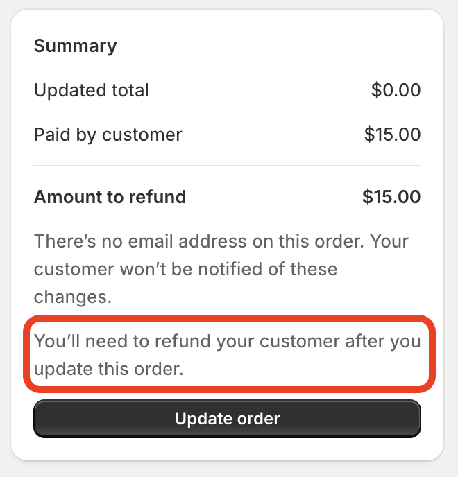 - The order will show a Returned by Shopify badge next to the item(s).