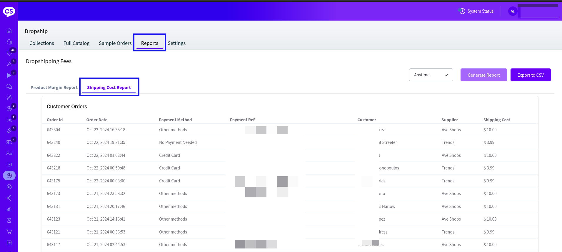 Your Dropship reports provide detailed insights into dropship-related transactions, helping you track charges, payouts, and financials for specific orders with ease.