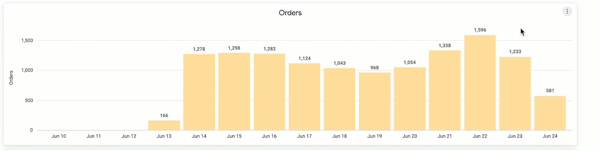 | Orders | Displays a breakdown of total orders by day for the date range you refined. |