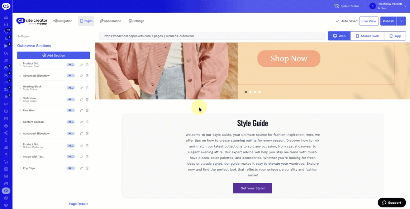 - Hover over the side menu of your CommentSold dashboard, then select Site Creator.