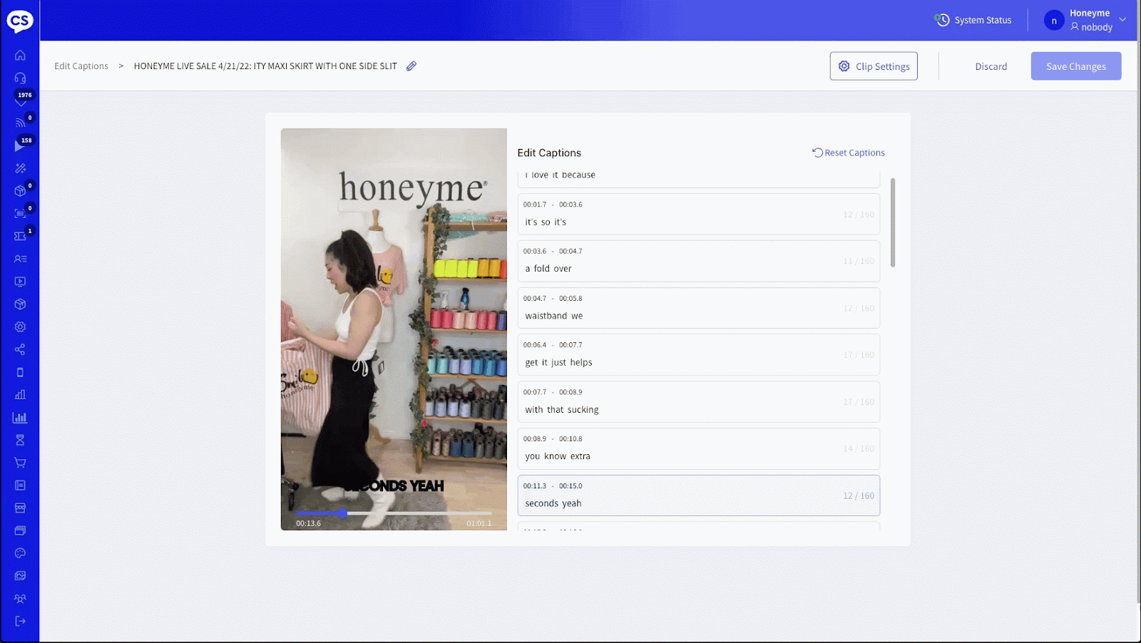 - When a word is updated or deleted, the captions shown on the clip playback are updated in real-time.