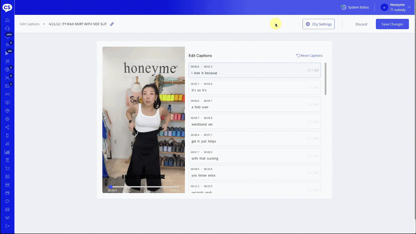 - Edit AI-generated clip captions: Update and/or delete individual words from the AI-generated clip transcript.