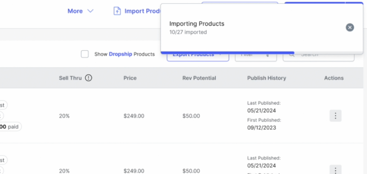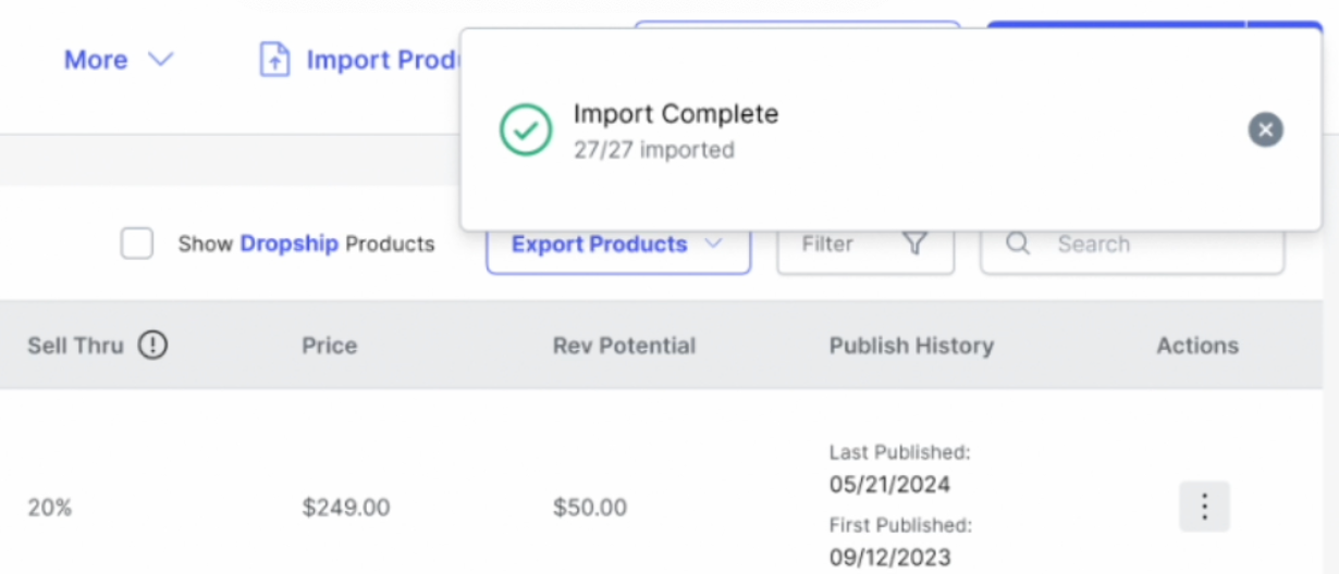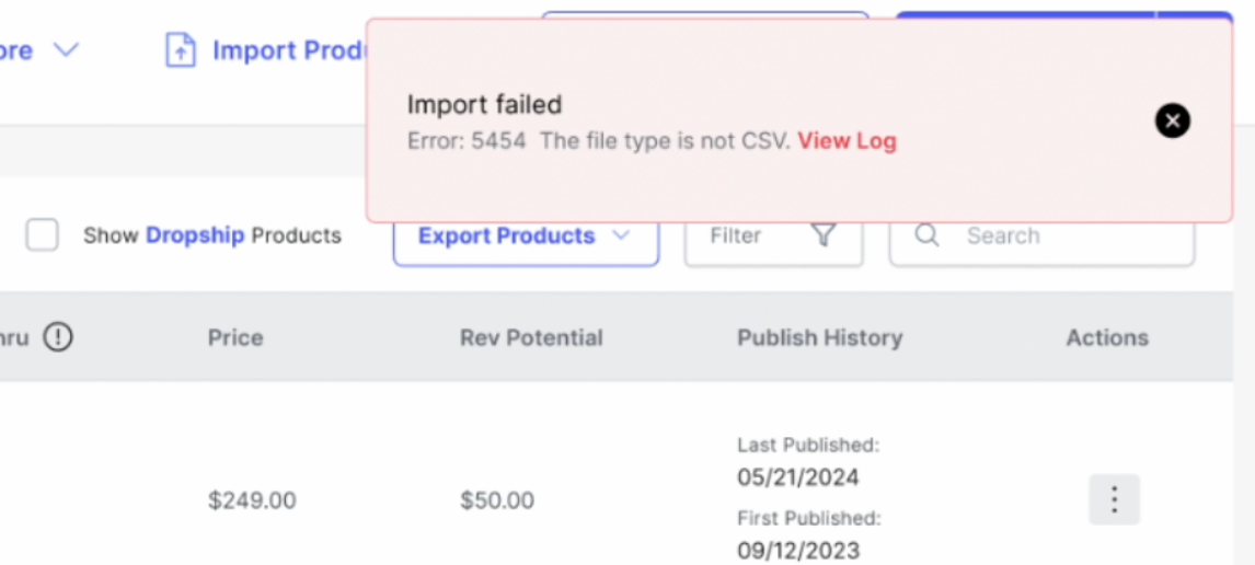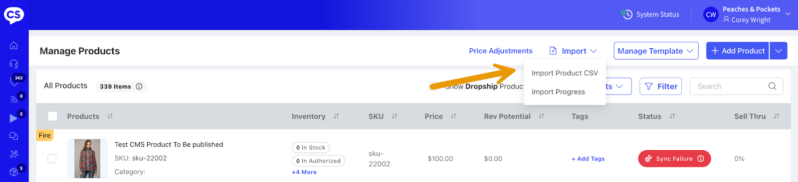 You can now see the new Import Product(s) drop-down. You can use the drop-down to Import Products using a CSV file.