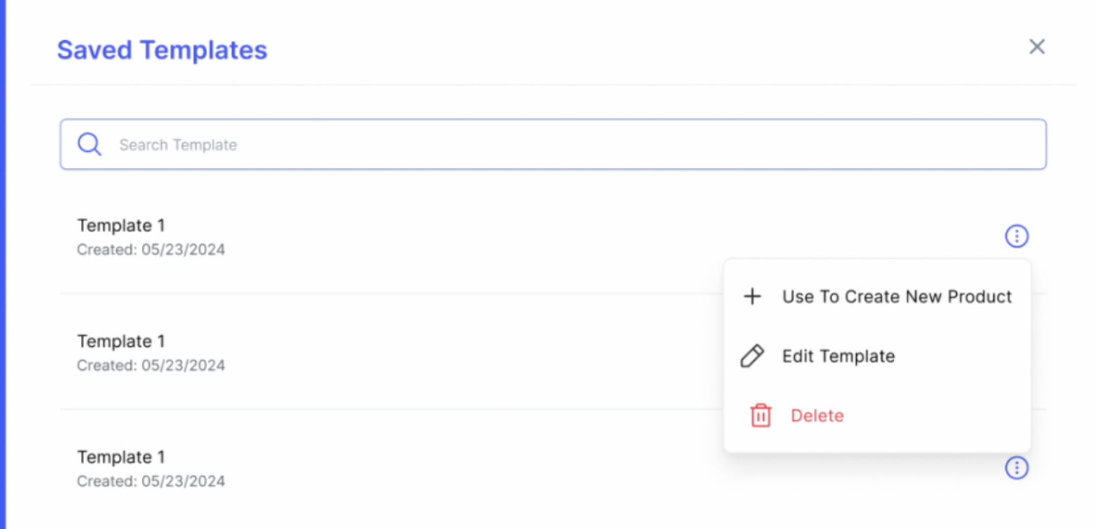 You can now see the new Manage Template drop-down. You can use the drop-down to Add new Template or View Saved Templates. You can edit, delete or use the saved templates to create new templates.