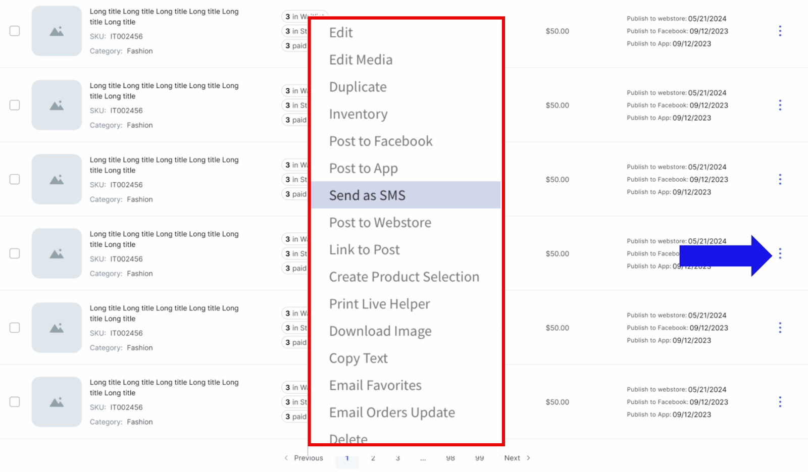 You can use the Three dot icon on the right side of the product to perform different actions.