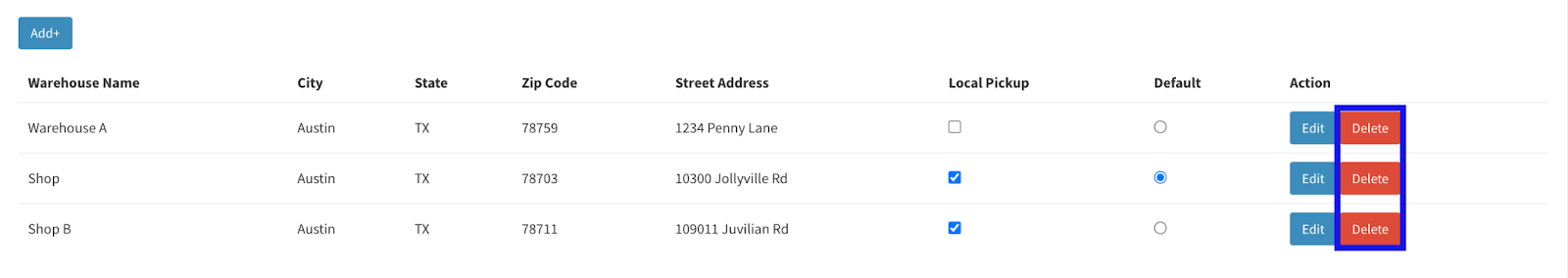 - Select the Default radio button for the desired location if you wish to set it as default.