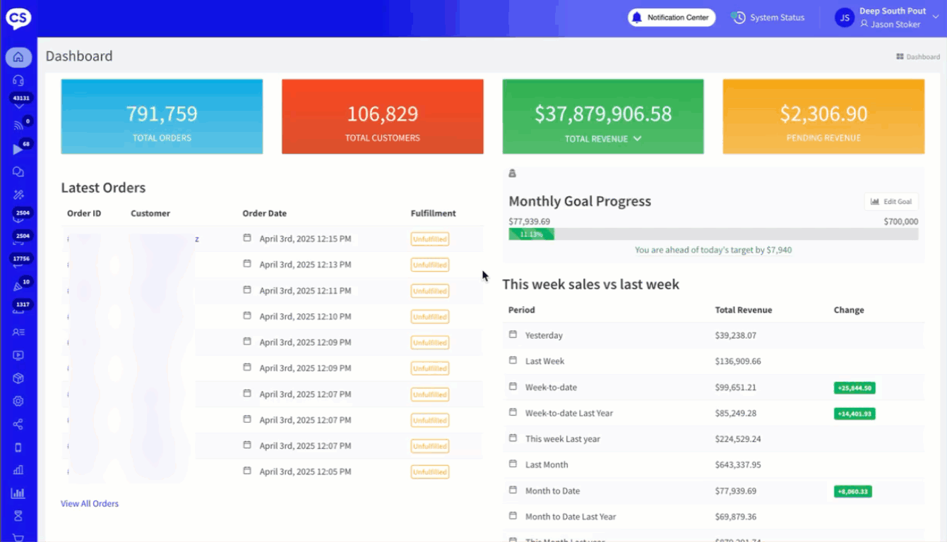 With day-to-day comparisons, hourly monitoring, and item-level source tracking, the dashboard helps you analyze sales trends, track order counts, and gain deeper insights into financial performance. These features allow you to spot patterns, optimize strategies, and refine your sales approach in real time.