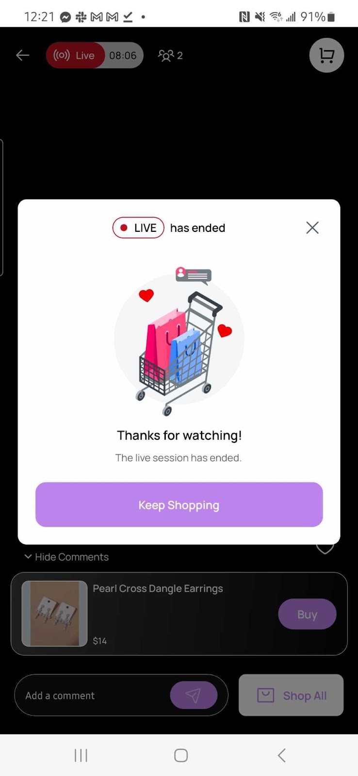 - End-of-Live Alerts: A friendly message now pops up when a live event ends, reminding your customers to complete their checkout, ensuring they don’t miss out on their favorite items.