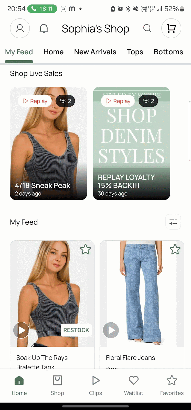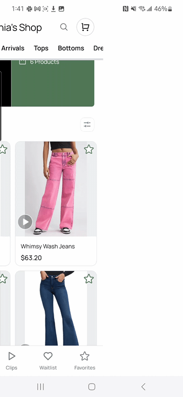 If you've connected Instagram to your app, your Instagram Stories will appear in as a highlighted shop logo icon above the category tabs. This allows shoppers to easily view your latest IG stories directly within the app by clicking your logo above your collections, keeping them engaged with your brand.