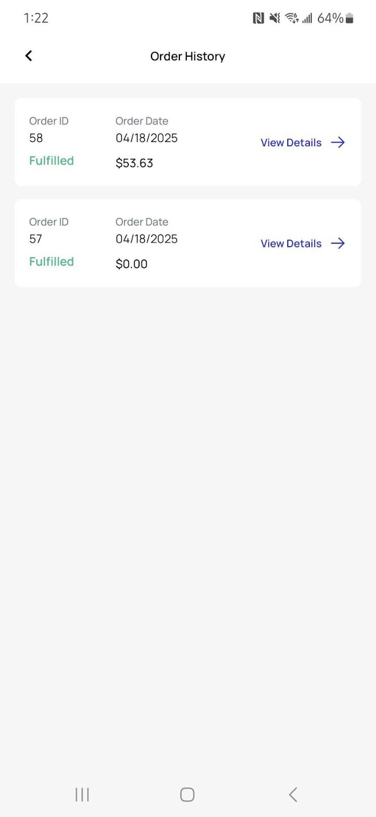 - New screen design for the Order History page to improve usability. Now, a View Details tag has been added, making it clear that the field is clickable. This enhancement ensures you can quickly access order details with ease.