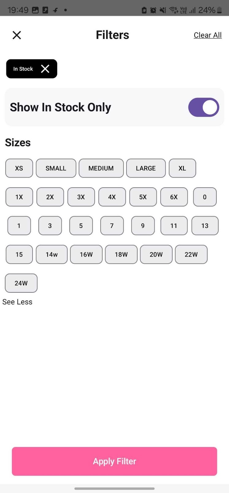 - New Layout: Filters now appear as a half-screen overlay instead of a full-page view, making selections easier without leaving the main shopping screen.