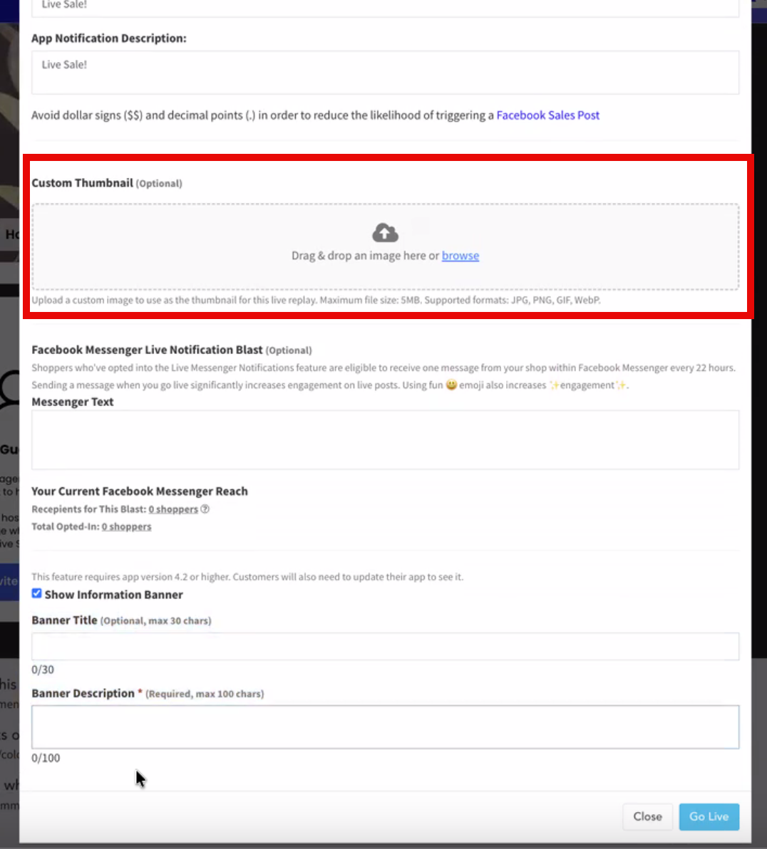 Add a custom thumbnail to your live replays to create a polished, on-brand look. Thumbnails help attract viewers and make your replay list more visually engaging.