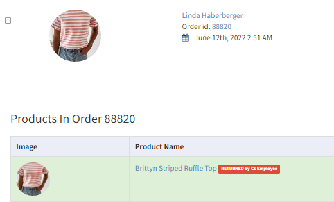 Issue: Order details show an item(s) as "RETURNED by CS Employee"