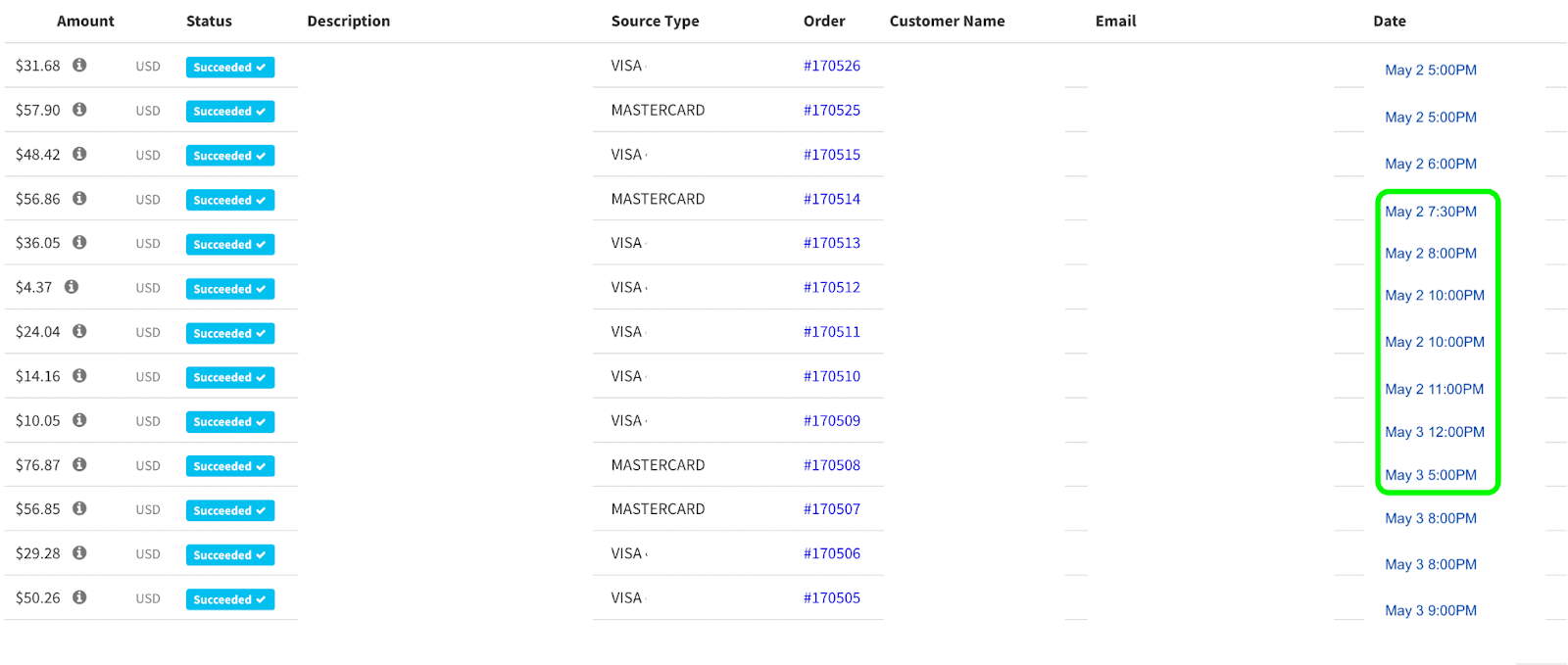 - Total sales made through CS Payments after 7 PM CST May 2nd + Total sales made through CS Payments before 7 PM CST May 3rd are batched into the payout for May 4th.