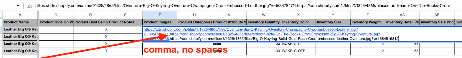 • If the product has multiple rows (for variants), all image URLs must be placed in the first row.