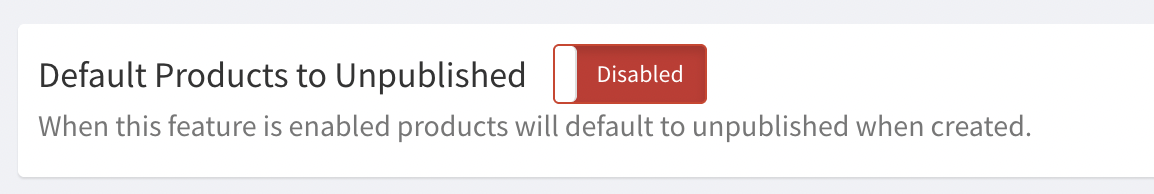 - Enabled: Products will default to unpublished when synced from Shopify.