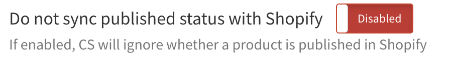 - Enabled: Product publish status in Shopify will not affect publish status in CS.