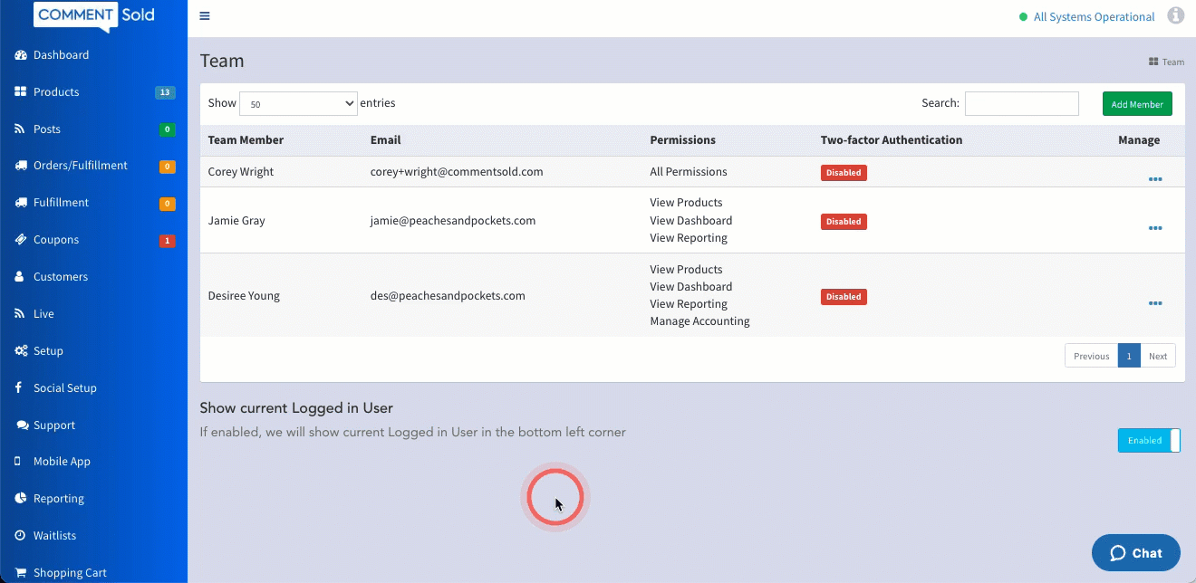 Individual login credentials allow you to keep track of activities happening within your CommentSold account and should be a part of a new team member’s onboarding experience.