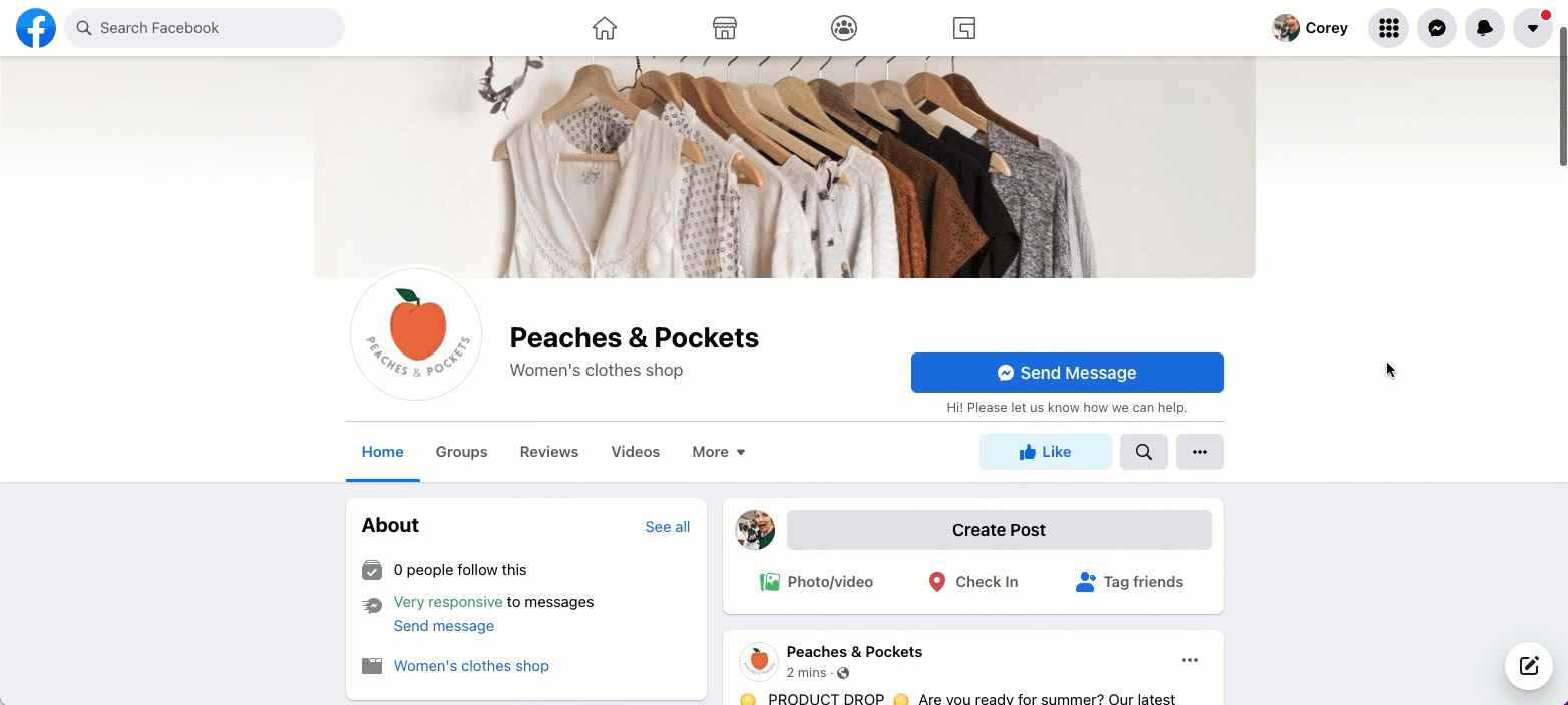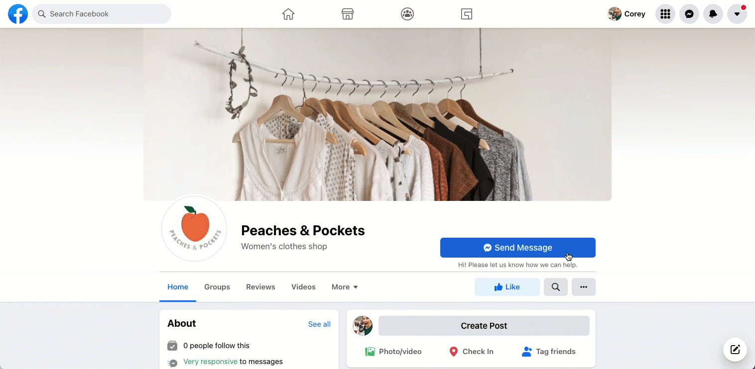 - Your shopper will need to select the Message button on the right side of your Facebook page.