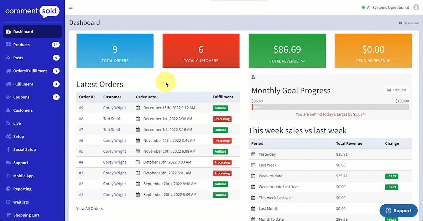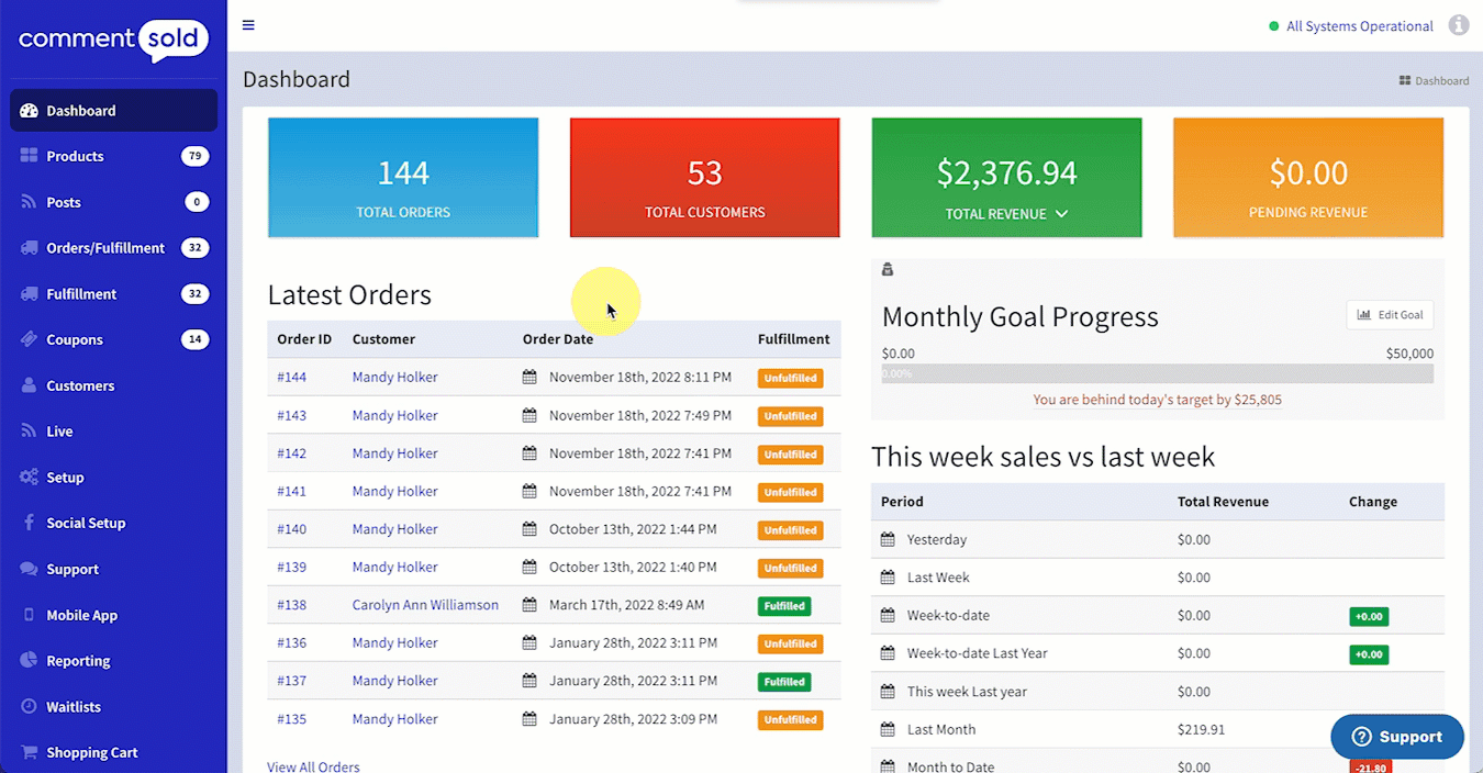 - Select Orders/Fulfillment in the side menu of your CommentSold dashboard.