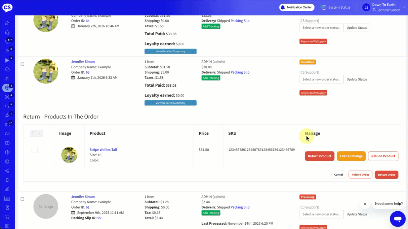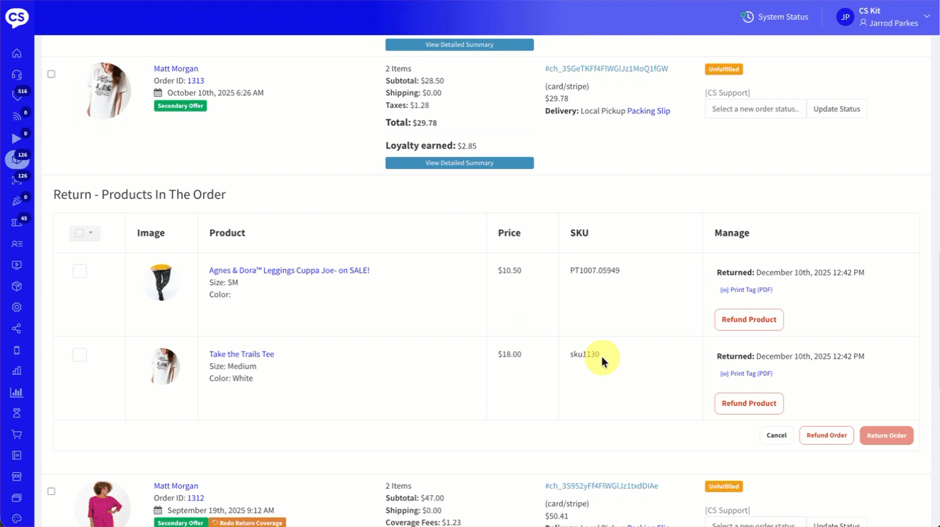 - Select Return Order at the bottom to process a return of all products included in the order.