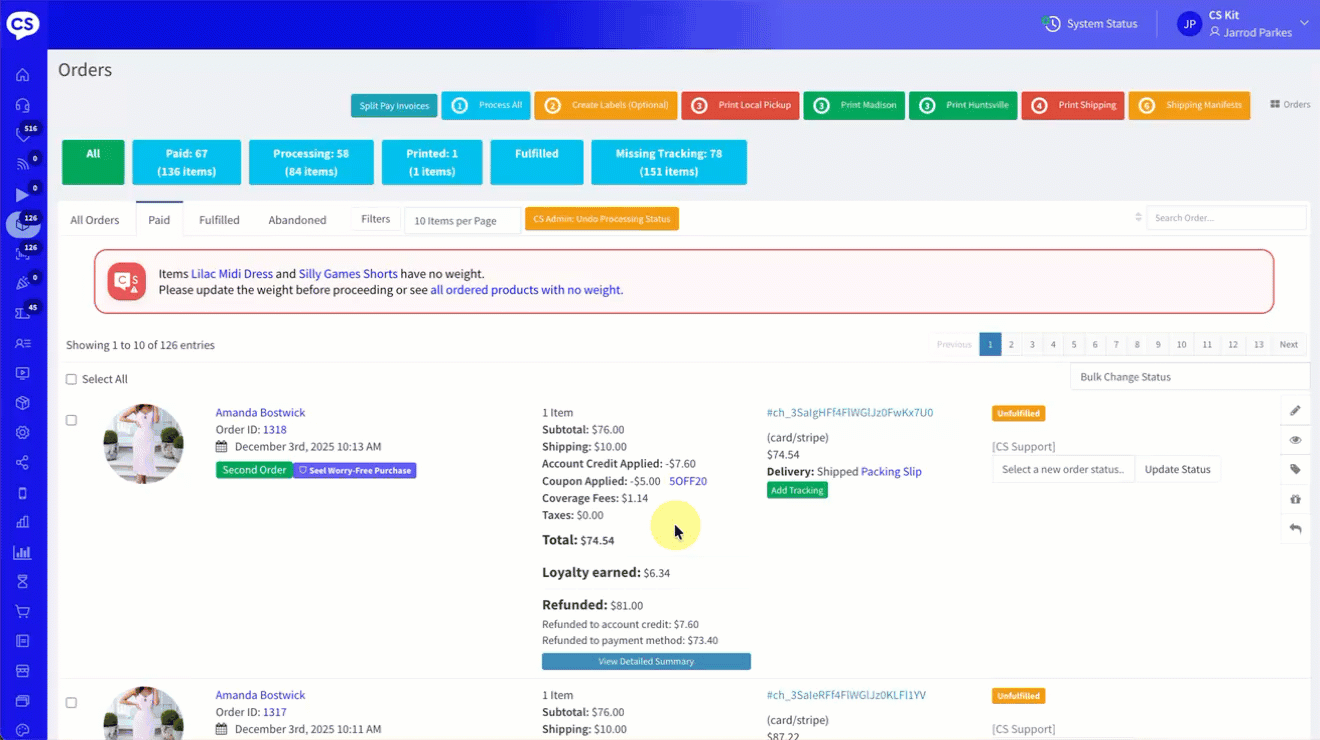 Issue: No option to refund showing This usually implies the customer account was deleted. You can refund directly from the payment gateway used for the order. If the order was paid through CS Pay, you will need to contact CommentSold support for assistance. |