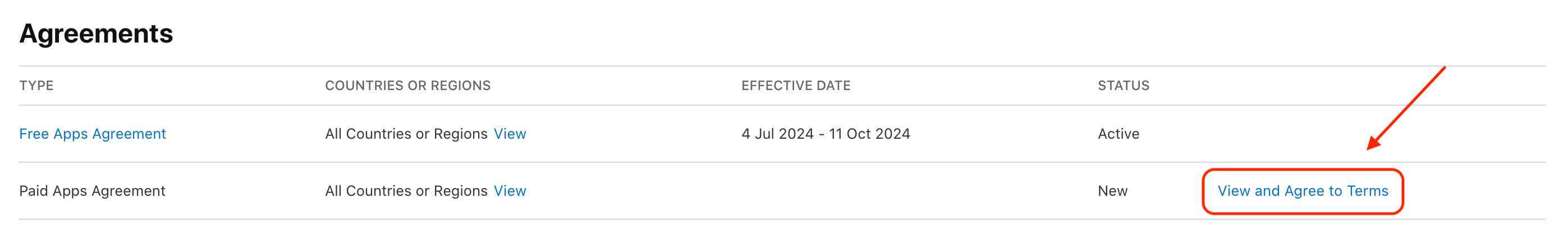 You'll know your agreements are all set if the Free AND Paid app agreements have a green dot and Active status in your Apple account.