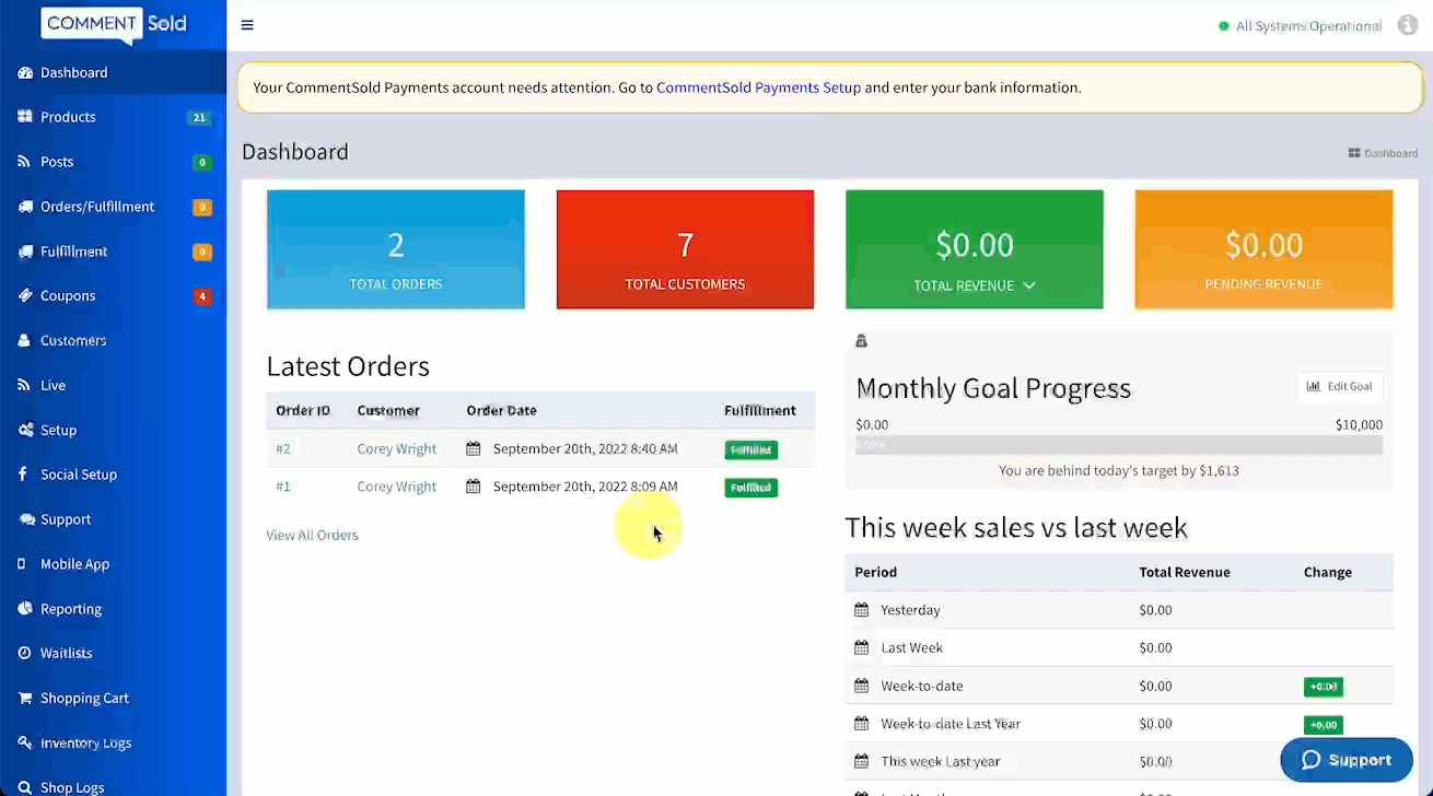 - Select Reporting in the side menu of your CommentSold dashboard.
