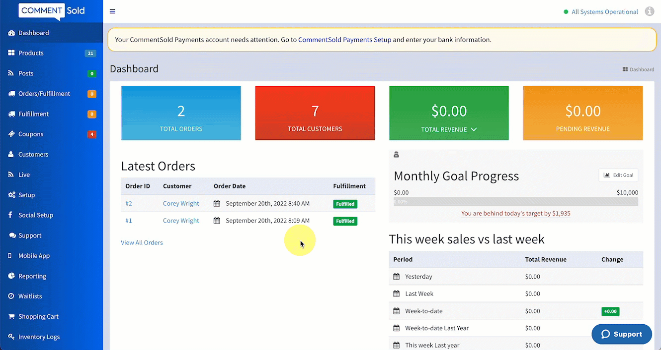 - Select Mobile App in the side menu of your CommentSold dashboard.