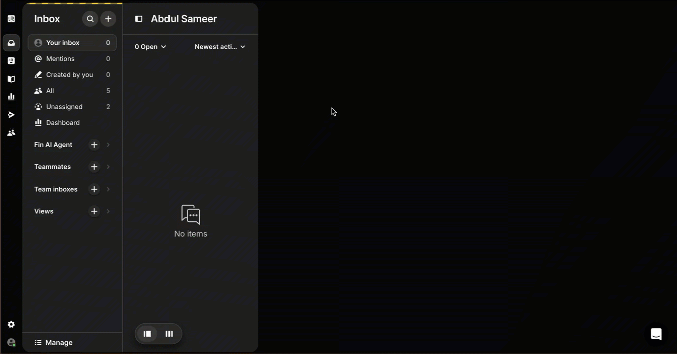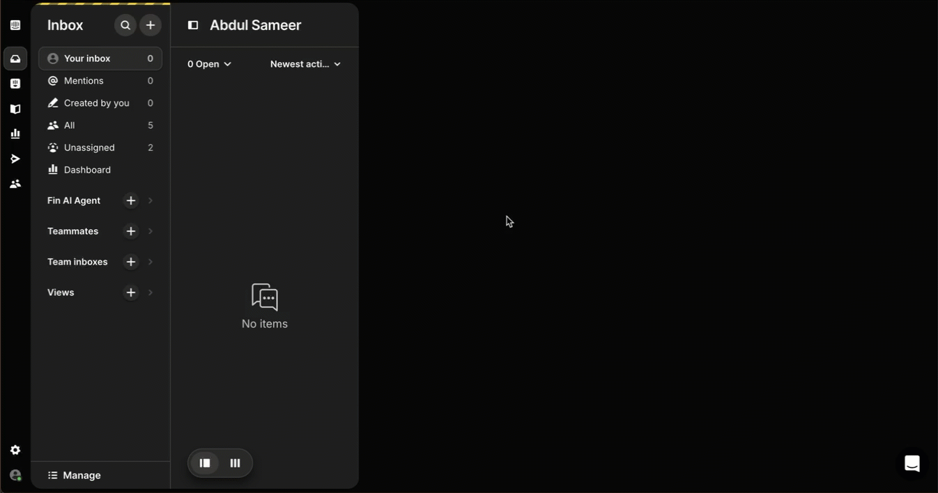 - Select your Settings at the bottom of the side menu of your Intercom dashboard.