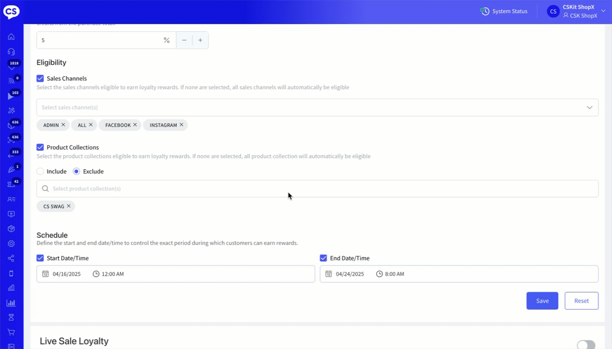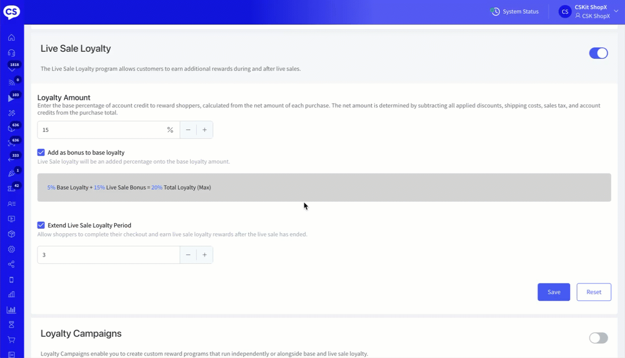 Live Sale Loyalty Turned ON