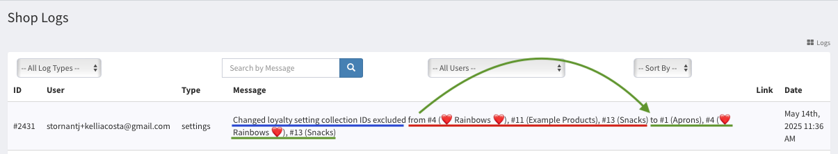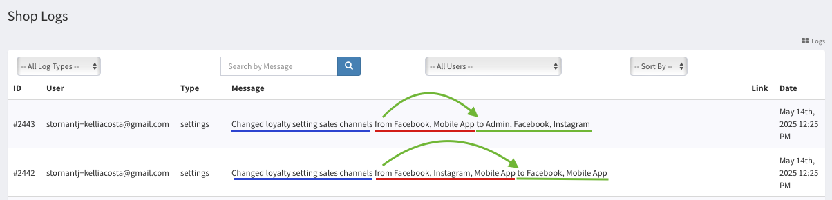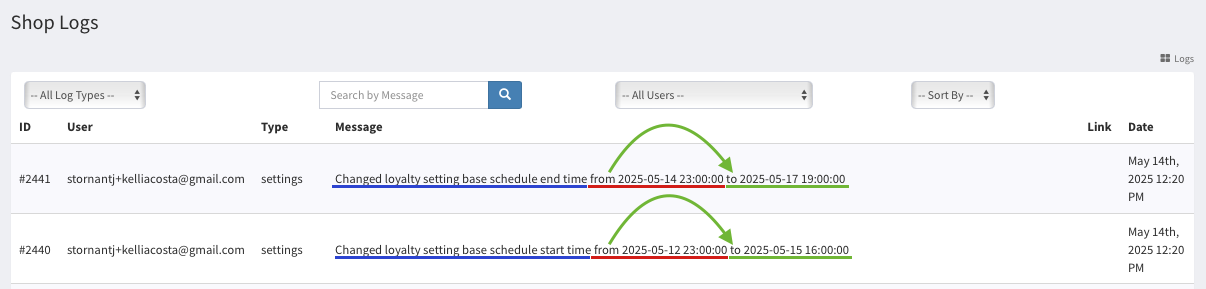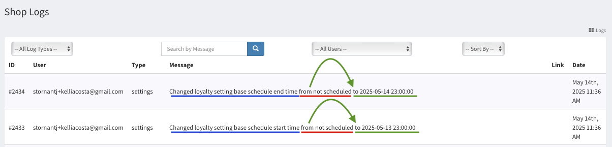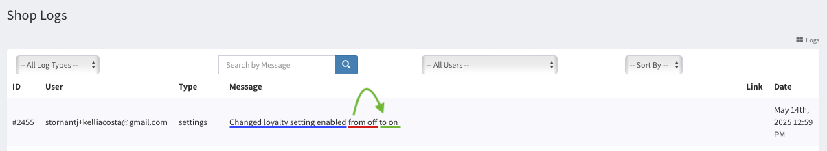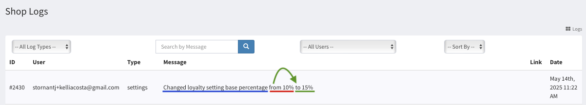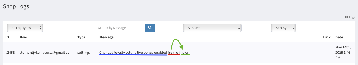 Interpreting Live Loyalty Changes in the Shop Logs Tab