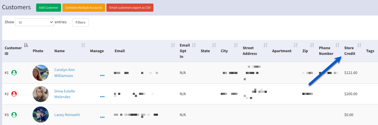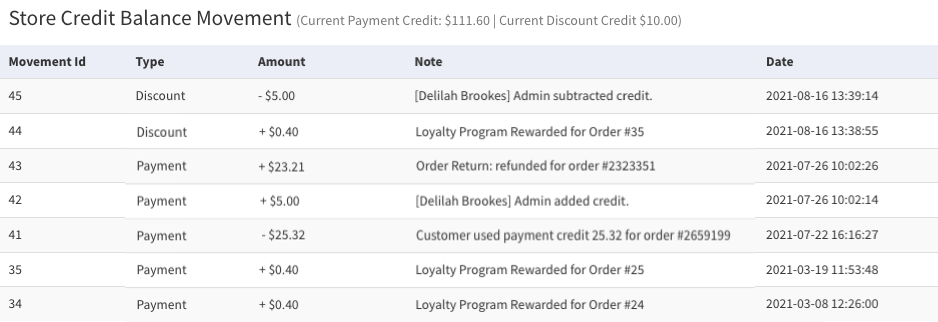 3. View the total in the Store Credit column toward the right side of the table.