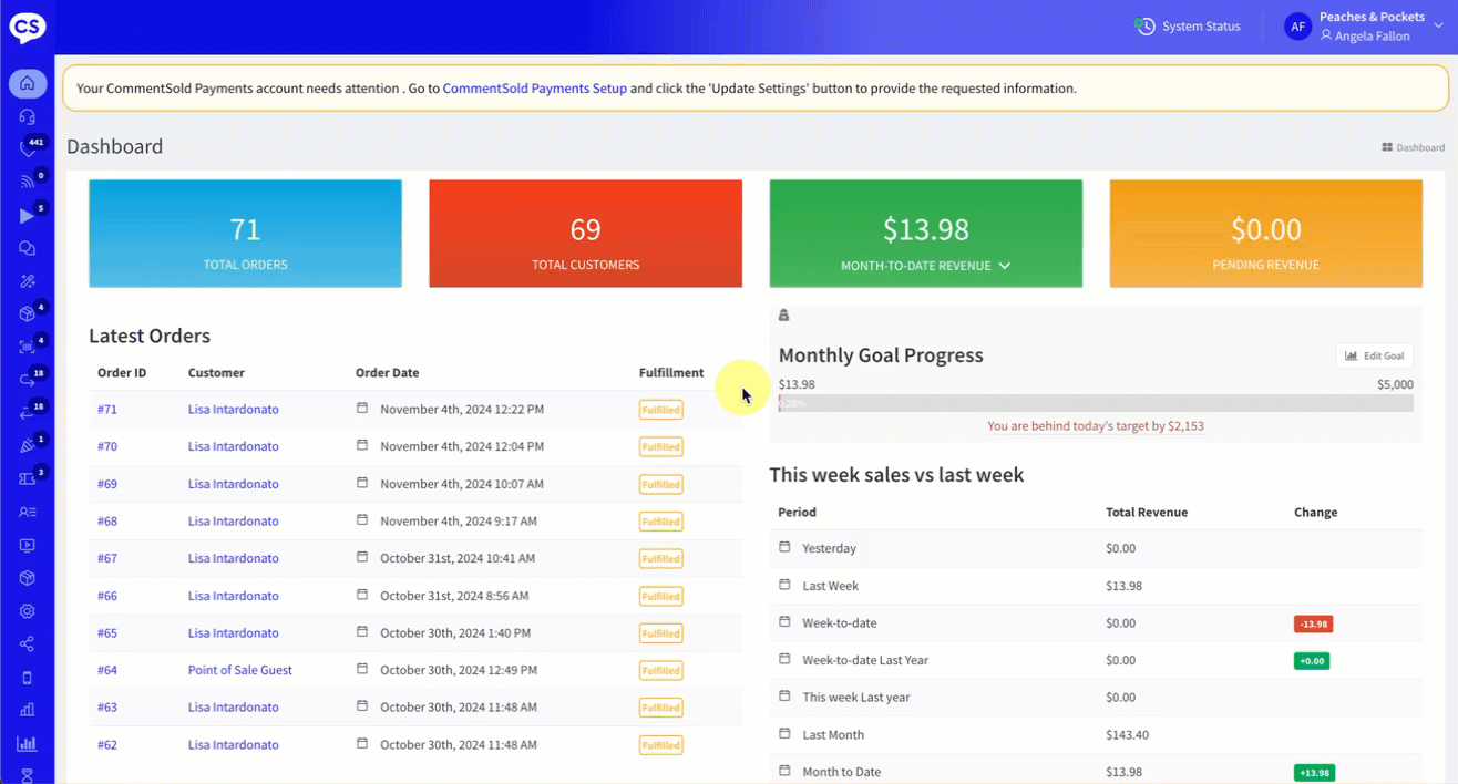 - Select Posts in the side menu of your CommentSold dashboard.