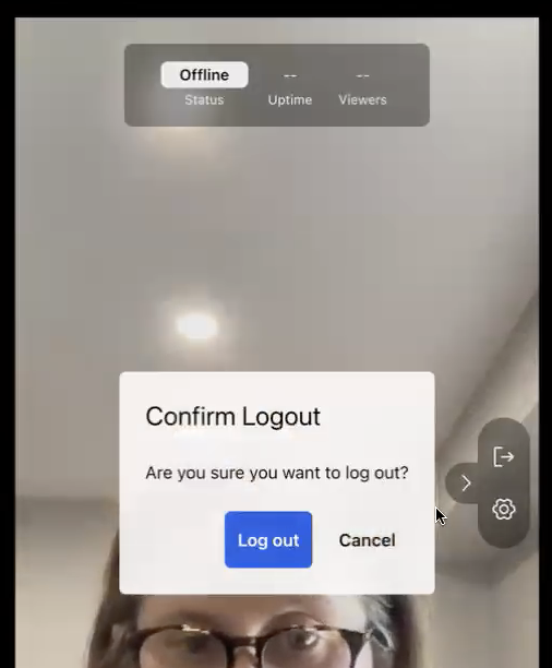 The red dot starts or ends the live stream. The rotate icon allows you to switch to another camera (if you have multiple cameras connected to the device). |