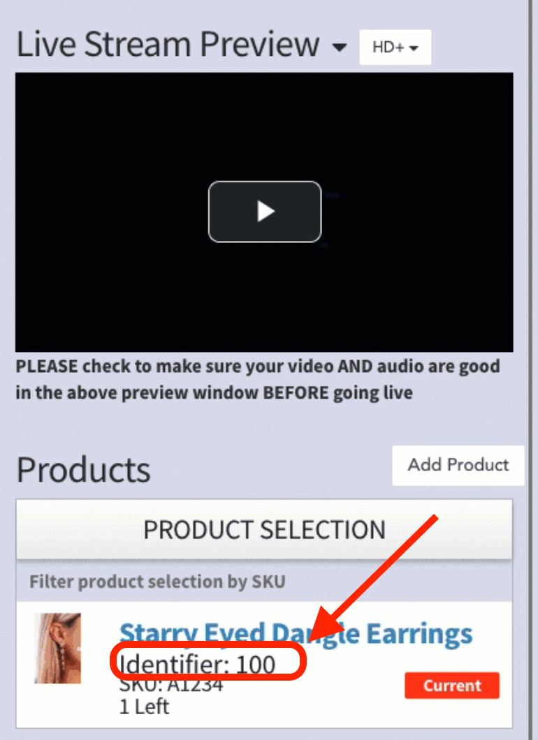 - Products are assigned identifiers during the product selection creation process or when added during a live sale.