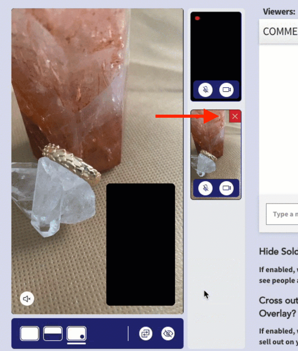 | The red X icon in the top right of the picture window allows the host to send a guest back to the “waiting room” or revoke their access to the live completely. |