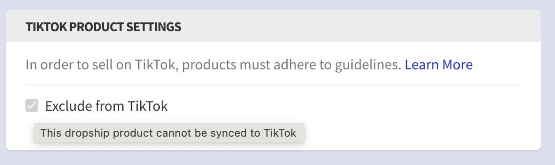 Dropship product won’t sync to Tiktok